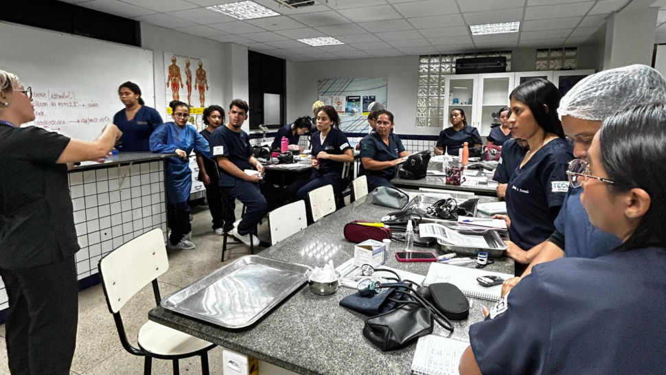 Os estudantes do Curso Técnico em Enfermagem da TECSCCI iniciaram a ambientação para o estágio com uma aula prática sobre sinais vitais e glicemia capilar, fundamentais para um cuidado seguro e humanizado com o paciente.